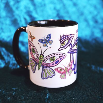 Black MugShrooms – Trippy Mushroom & Butterfly Mug