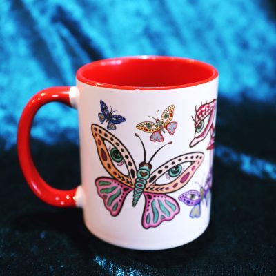 Red MugShrooms – Trippy Mushroom & Butterfly Mug